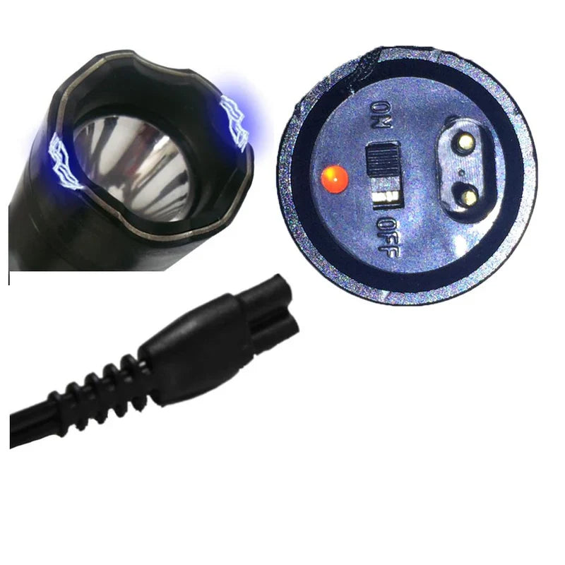 Es un bastón Taser táctica recargable que incluye una potente descarga eléctrica de 95,000,000 voltios para defensa personal. Combina seguridad, practicidad e iluminación en un solo dispositivo compacto.
