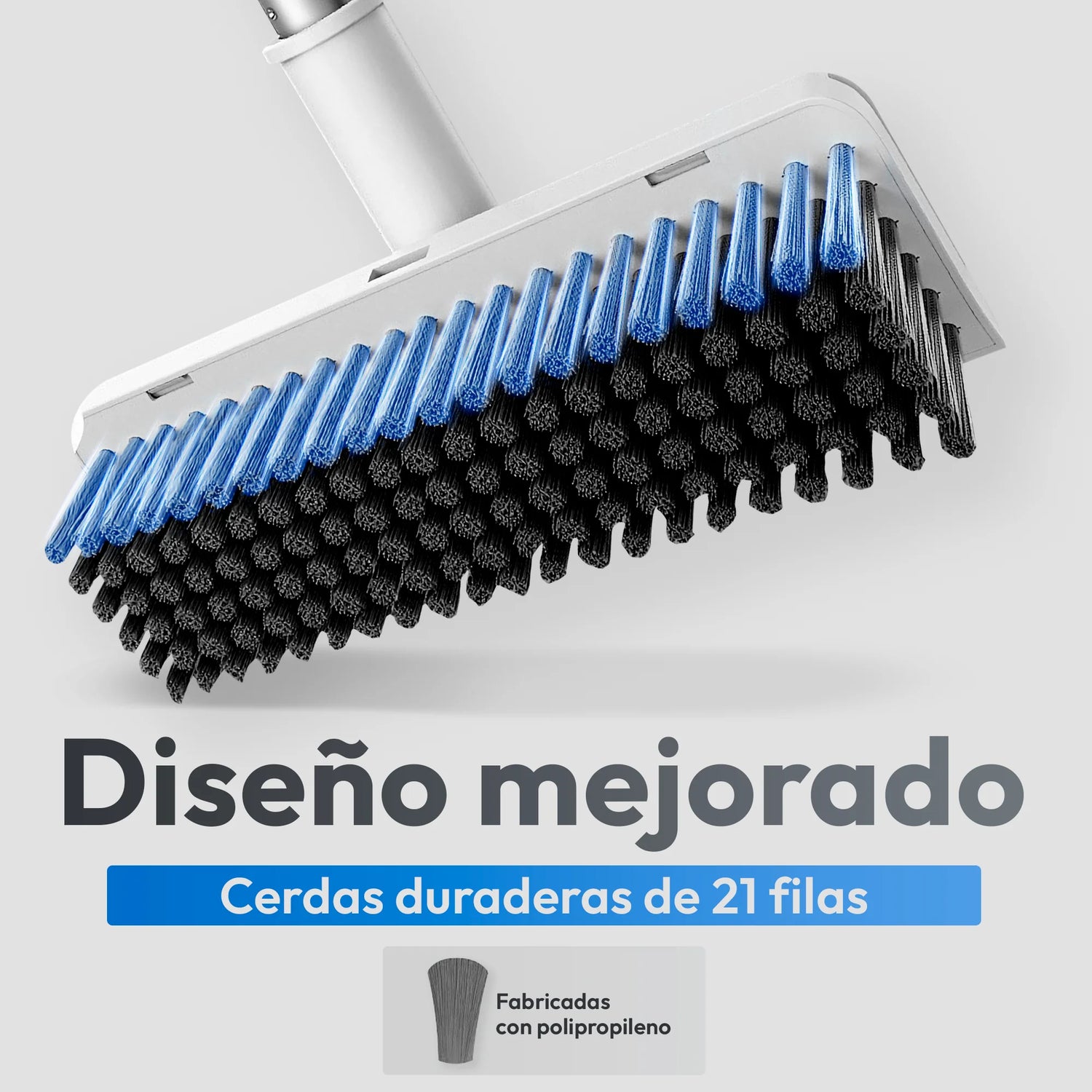El cabezal de la escoba se ajusta para llegar a cada rincón, facilitando la limpieza en áreas estrechas y esquinas difíciles.