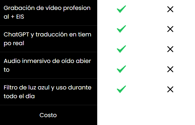 A diferencia de otras, estas gafas ofrecen grabación de video fluida, traducción instantánea y audio de oído abierto. Disfruta de una comunicación nítida y unas imágenes impactantes.