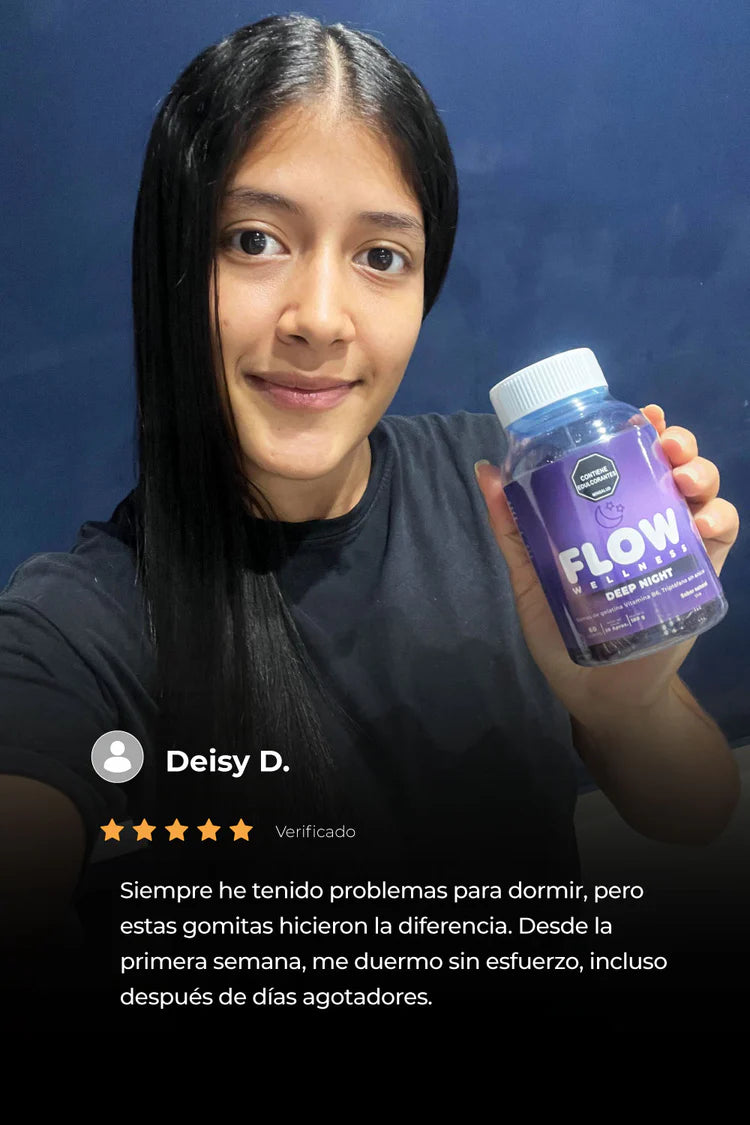 Las gomitas Deep Night mejoran la calidad de tu sueño, brindándote un descanso profundo y reparador. Al despertar renovado y con más energía, te ayudan a sentirte mejor y a afrontar el día con mayor facilidad.