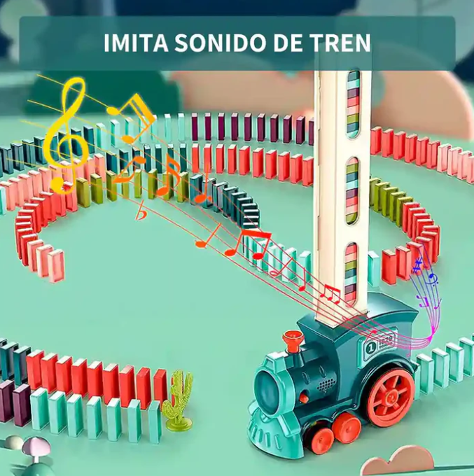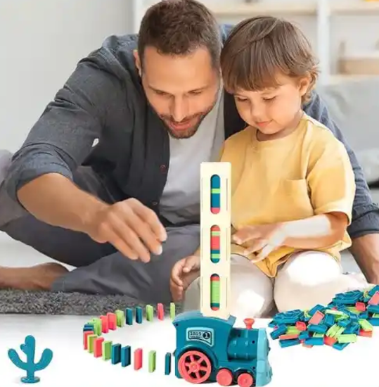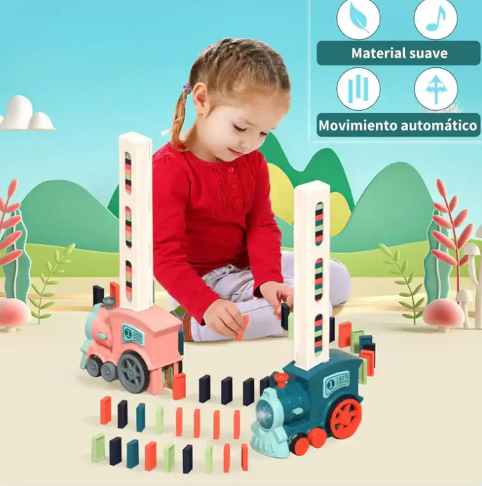 ¡La creatividad de tu hijo en marcha! Con este tren de dominó aprender es divertido.