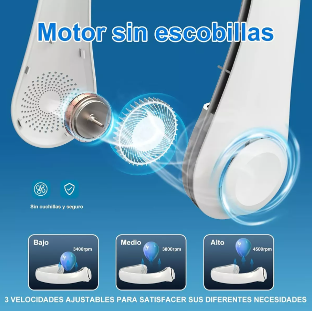 Imagina un verano fresco sin abanicos voluminosos ni aire acondicionado costoso. El Ventilador Portátil de Cuello es la solución que necesitas. Con su diseño ergonómico y flujo de aire 360°, este dispositivo te mantiene fresco incluso en las condiciones más extremas. La batería recargable te ofrece horas de frescura sin interrupciones, mientras que su diseño sin aspas es seguro y moderno. No más incomodidades ni estrés por el calor.