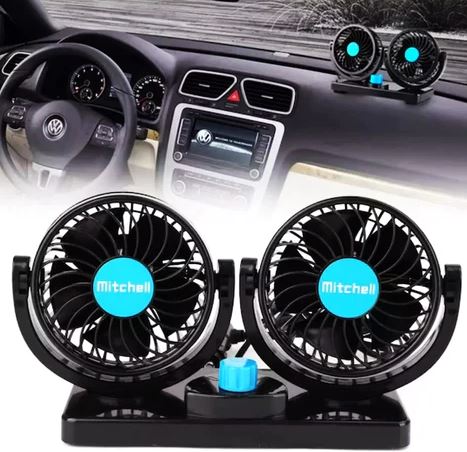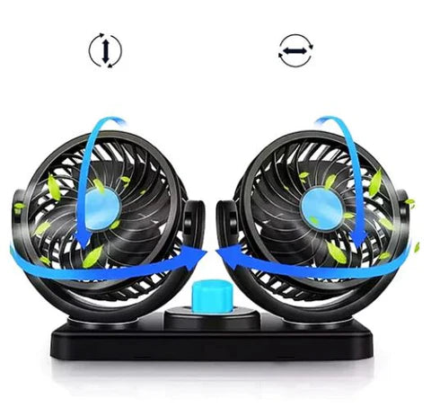 Su diseño de doble cabezal y capacidad de ajuste en 360 grados te proporcionan un flujo de aire fresco en cualquier dirección que desees. Funciona con alimentación DC12V/24V, lo que lo hace compatible con la mayoría de los vehículos, y su bajo consumo de energía garantiza eficiencia sin comprometer el rendimiento.